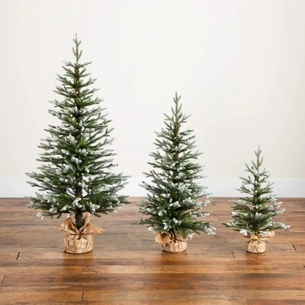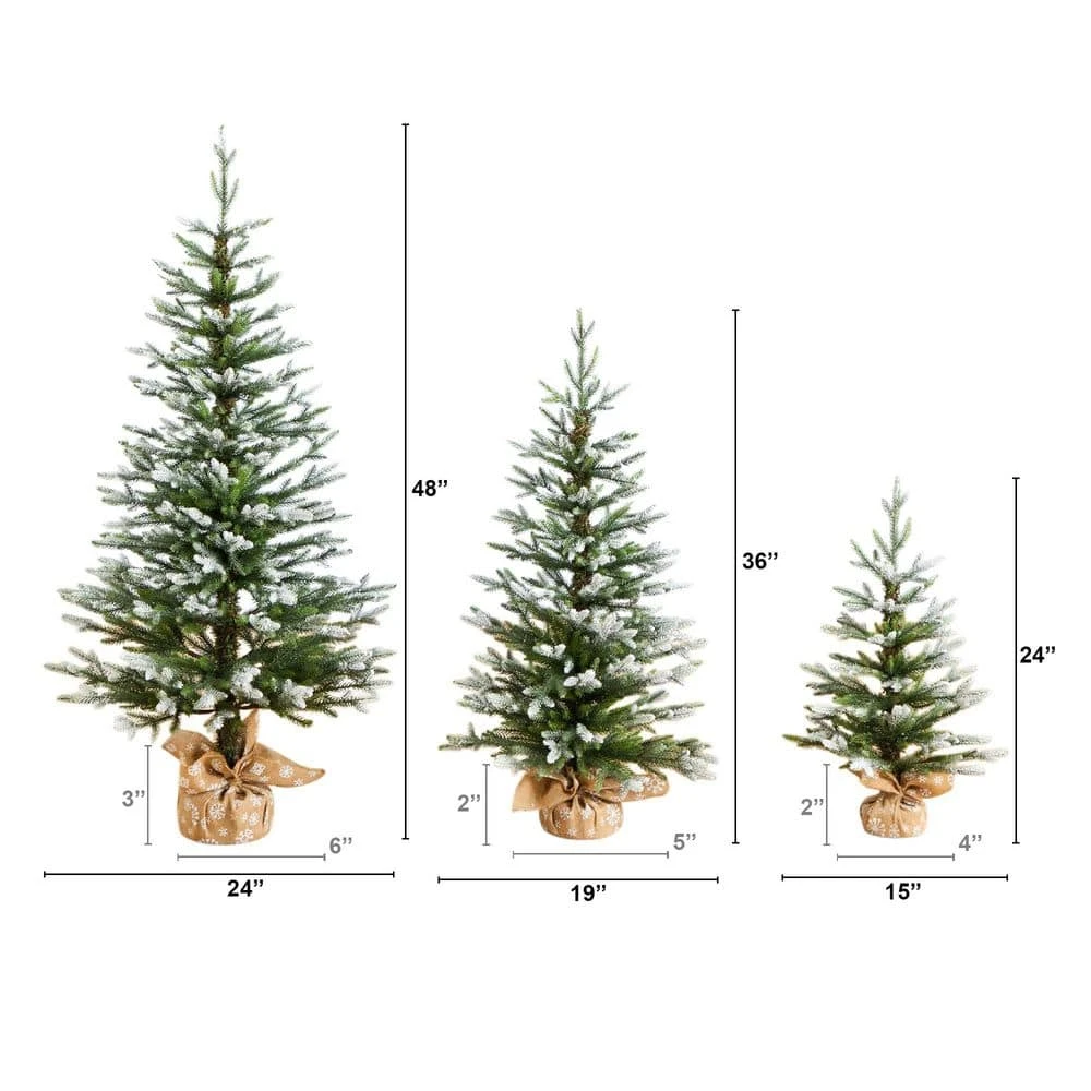 - Welcome the holiday season with this 2 ft. 3 ft. and 4 ft. (set of 3) snowed balsam fir christmas trees