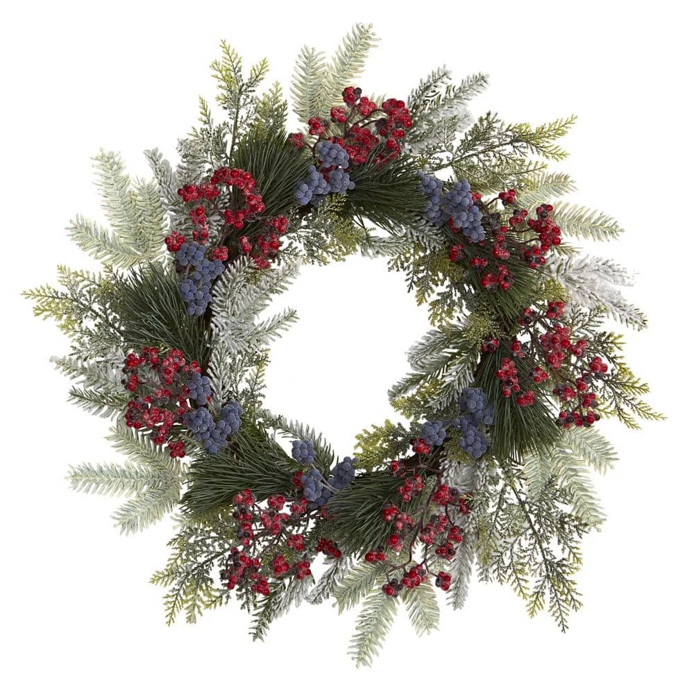 Update your favorite seasonal accents while adding serious curb-side appeal with this artificial wreath intricately designed from a mix of cedar and pine foliage, carefully accented throughout with decorative red holly berries to help get your home into the holiday spirit. Great for injecting a splash of holiday colors onto a bare wall or an empty doorway, this 24 in. (in circumference) decorative wreath makes for an inviting accent and can undoubtedly help inject front-door appeal all throughout the holiday season. Silk plants are manufactured using synthetic materials, such as polyester material or plastic, and are well designed and constructed to be life-like in appearance. This item will need to be re-shaped when removed from the secure box to allow it to reach its fullest size. Your artificial plant will look beautiful for years to come; simply wipe clean with a soft dry cloth when needed. About Nearly Natural Inc. – For over 75-years, Nearly Natural Inc. has been providing conscientious consumers with beautiful alternatives to natural decorations. Employing and advised by naturalists who understand the live plant world, Nearly Natural is able to recreate the most realistic-looking decorative items for homes, offices, and businesses. Driven by a true commitment to customer service, attention to detail, and natural philosophy, Nearly Natural strives to bring customers the most beautiful, unique, and striking faux plants and floral on the market.