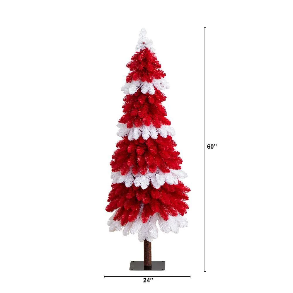There’s nothing better than a peppermint to curb your sweet tooth, so why not add it to your holiday decor this year Sweeten up any corner of your house with this artificial peppermint Christmas tree’s fun design without the guilt. You can even bend the branches for a custom look. It comes pre-lit with 150 microdot, energy-efficient LED lights, casting a cozy glow and also saving you time and energy costs during the holiday hustle. Alternating between the 8 festive light functions is a breeze, letting you match the tree’s light to your mood. Standing 5 ft. from a sturdy metal stand, display this novelty piece in any area in need of a seasonal touch. You can also display the enhance the look into your holiday decorations by hanging candy ornaments on the tree. Wrap red and white-striped ribbons around wreaths and garlands as a fun DIY.
