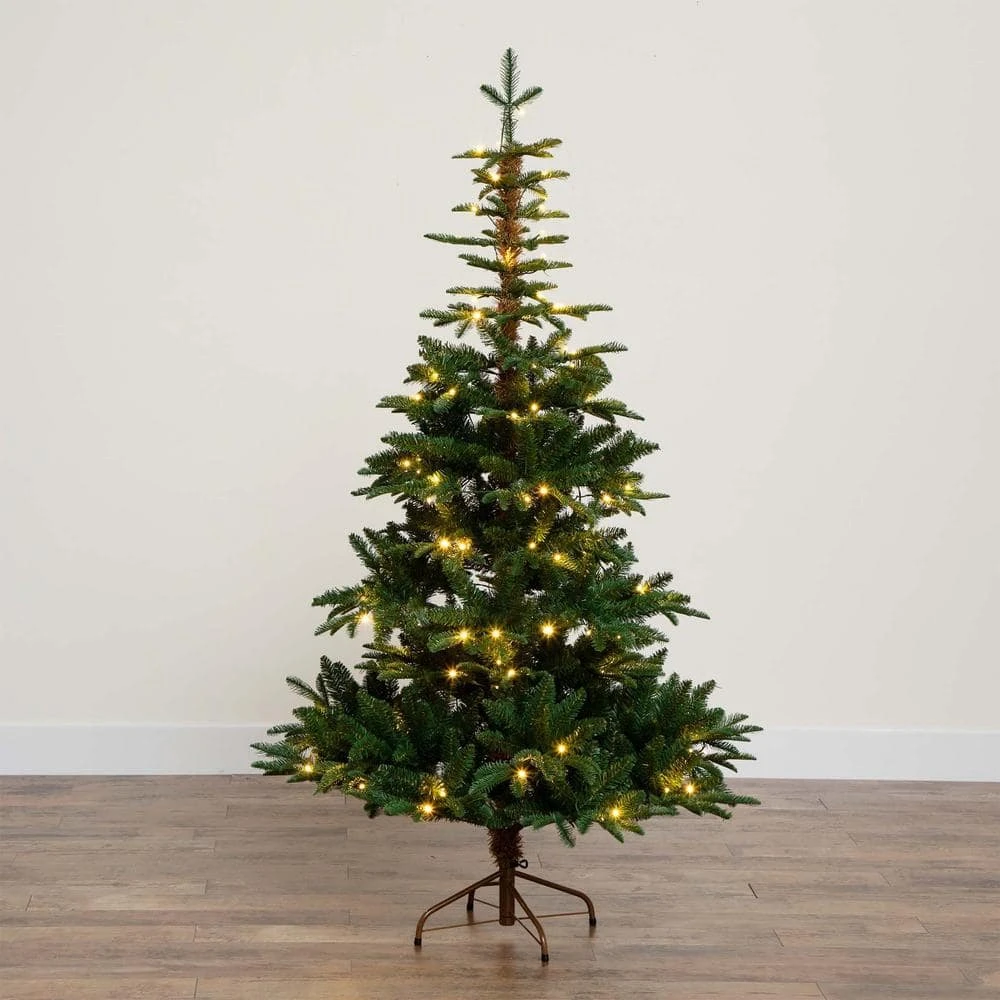 Get that farm-to-home look with this mixed fir artificial Christmas tree. Inspired by dreamy tree farms in Colorado, this nature-inspired Christmas tree pays homage to the season with its intricate details and a full top. Crafted from high-quality materials, the lifelike branches can be easily shaped for a custom look. Pre-lit with 130 warm white, energy-efficient LED lights, it saves you hassle during the busy holiday season. Standing 6 ft. tall on a sturdy stand, this tree transforms your space into a winter wonderland. Add various ornaments such as sparkling snowflakes, shimmering icicles and elegant silver or gold ribbons. You can also enhance the tree’s natural look by hanging pinecone ornaments, woodland animal figurines and strings of faux berries.