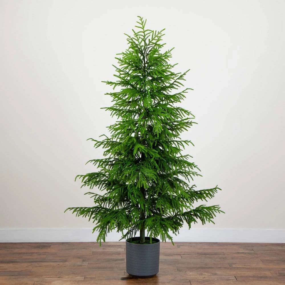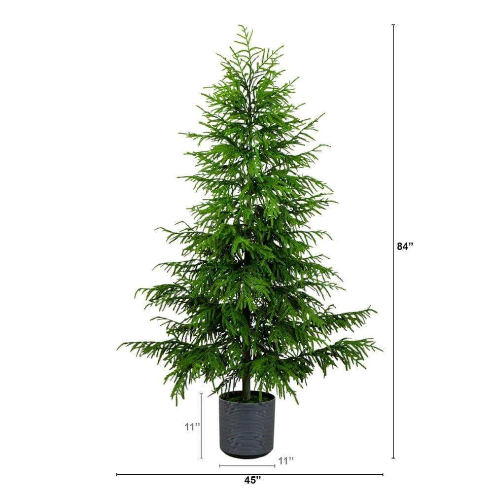 Evoke hints of the outdoors on bare surfaces with the help of this artificial Norfolk pine tree. A gorgeous, lush tree inspired by the verdant Pacific coastline of New Zealand, it boasts lush, green foliage for a robust, full appearance, yet requires no maintenance at all. The branches are made of high-quality materials you’ll notice the attention to detail in its natural look and real touch branches and are bendable to fit any space. Enhance the your space with the artificial Norfolk pine by adding twinkling fairy lights or colorful ribbon garlands. Standing 7 ft. from a nursery planter, create your dream home today by adding to a base of your choice. Enhance any space today no matter your decor style and spread cheer.
