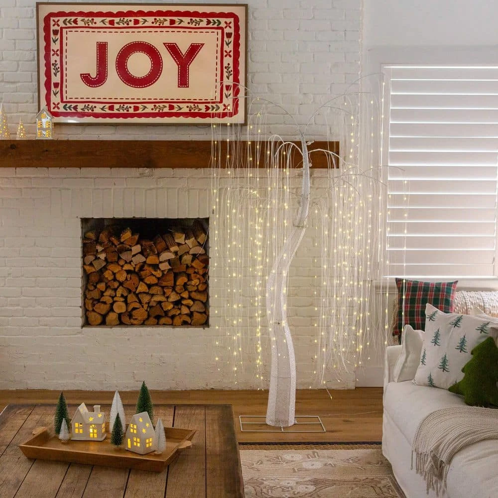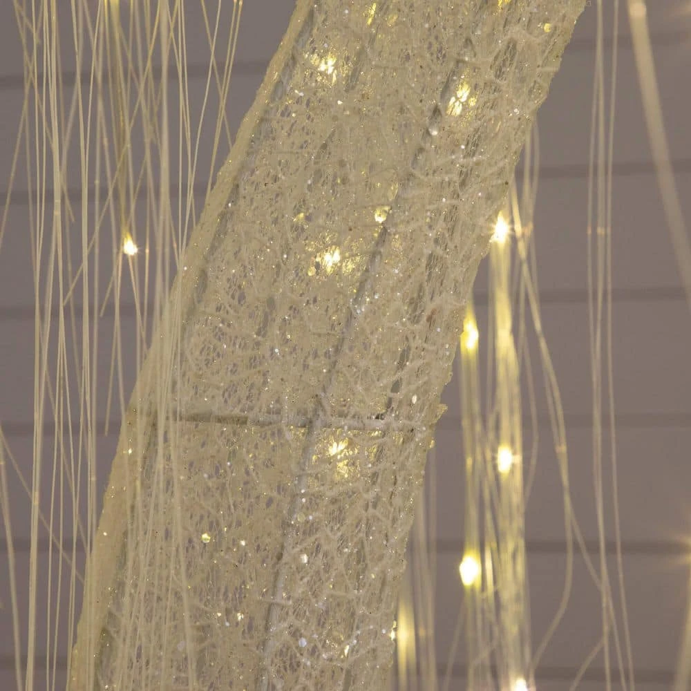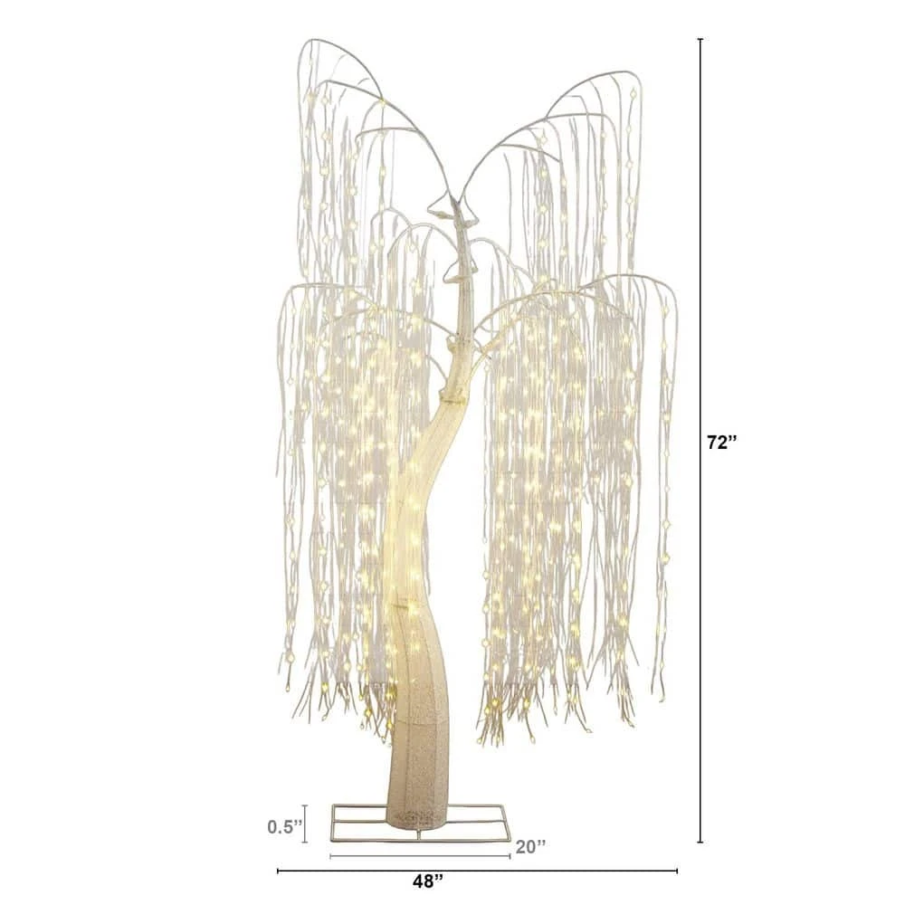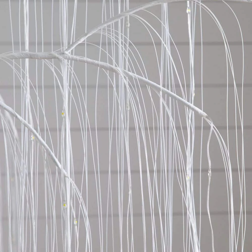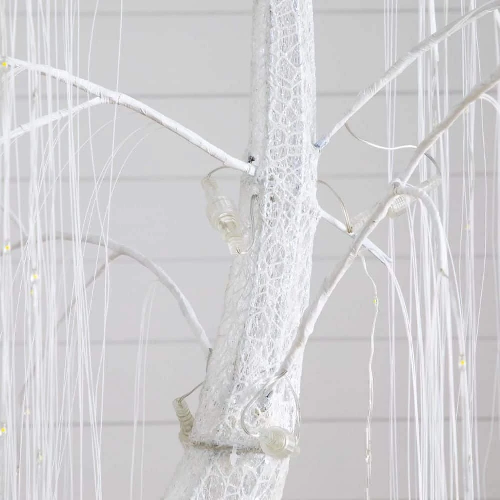 Make it an elegant holiday night with the artificial white willow tree. Inspired by the gothic charm and the mysterious allure of the willow trees, create your own haunted house and watch as this statement piece does all the talking. Crafted from high-quality materials, you’ll notice the curving slender white trunk silhouette that supports bendable branches while the light hue softens the look. Nestled between the long branches are 400 LED cool white lights. Standing 7 ft. from a sturdy base, display this sophisticate piece in any room that needs a showstopper. Perfect for Halloween parties, haunted house events, or as a stunning seasonal centerpiece that elevates your autumn decor beyond typical orange and black colors.
