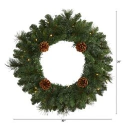 20 In. Pre-Lit Pine Artificial Christmas Wreath With 35 LED Lights And Pine Cones