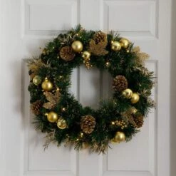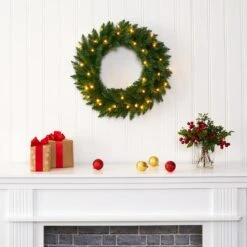 24 In. Mixed Pine Artificial Christmas Wreath With 35 Clear LED Lights And Berries