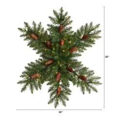 30 In. Prelit LED Dunhill Fir Snowflake Artificial Christmas Wreath With Pinecones And 40 LED Lights