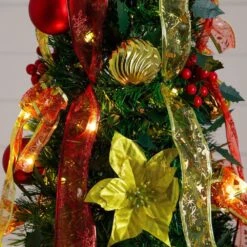 6 Ft. Pre-Lit Christmas Pine Artificial Garland With 50 Warm White LED Lights And Berries