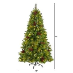 6 Ft. Pre-Lit White Mountain Pine Artificial Christmas Tree With 300 Clear LED Lights And Pine Cones